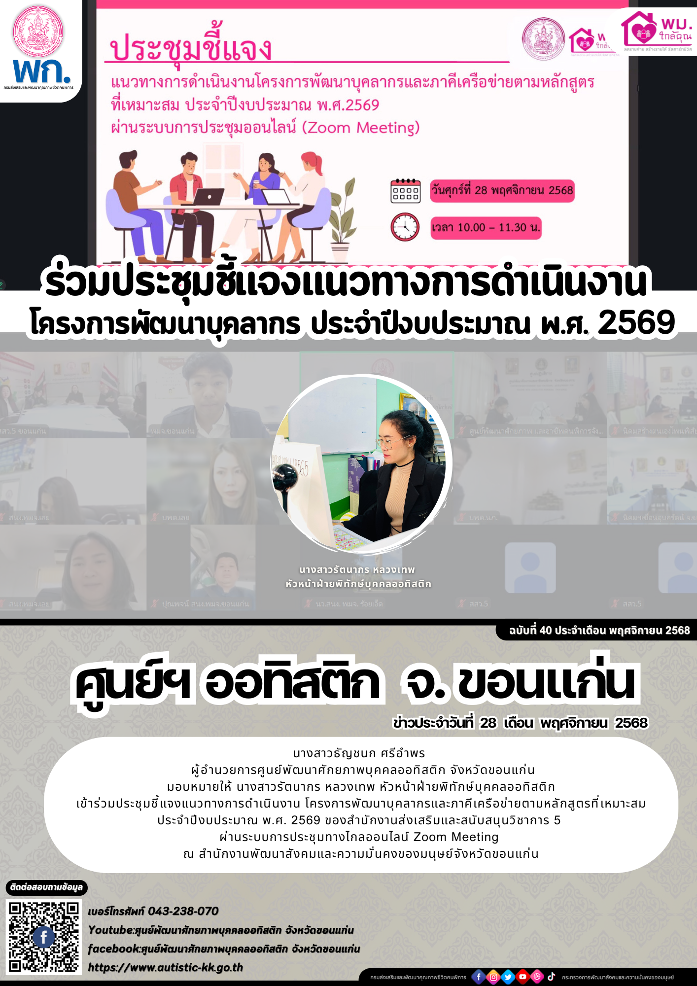แผนการปฏิบัติงานและงบประมาณรายจ่าย ประจำปีงบประมาณ พ.ศ. 2569 [ ลงข่าว : 03/10/2568 โดย : เจ้าหน้าที่ศูนย์ 25 ]
